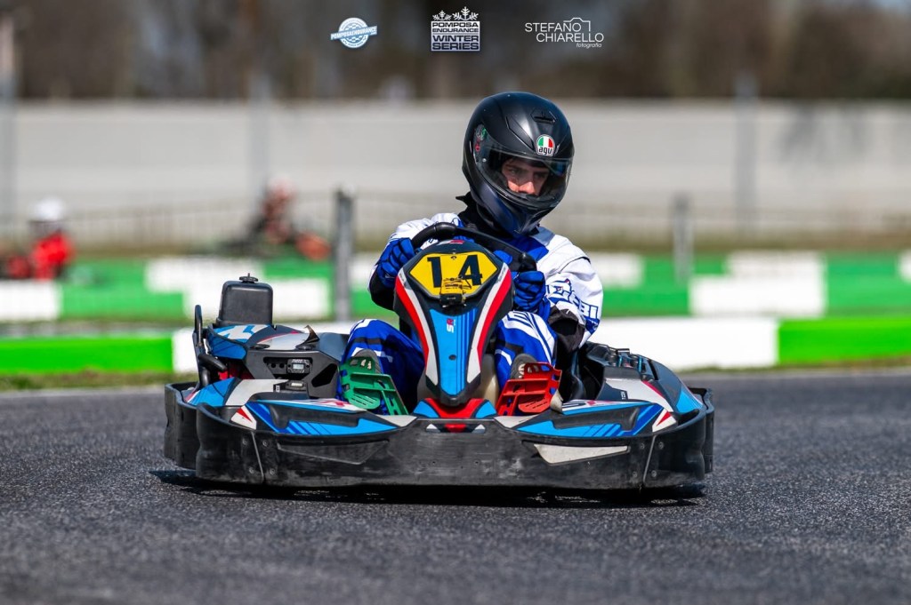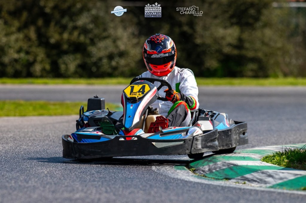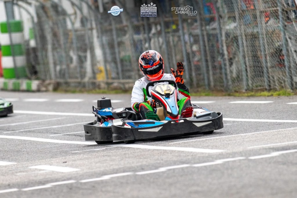 La gara, però, racconta sempre un’altra storia. Alla partenza Cecconello vive uno dei suoi avvii più difficili, ritrovandosi in fondo al gruppo già alla terza curva. Marinato invece scatta bene, ma paga l’inesperienza su un tracciato tecnico come Pomposa, dove restare agganciati al gruppo centrale richiede precisione e ritmo costante. Nonostante la partenza complicata, Cecconello non si lascia abbattere: giro dopo giro risale fino alla P11, riportando la squadra in piena lotta.