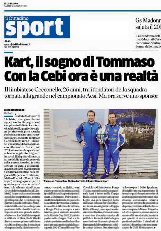 2019 – La squadra si assicura l’ingaggio per la stagione dell’esperto Simone Camisa e del pilota veneto e Youtuber Massimiliano Melchiotti. La CEBI diventa PER LA PRIMA VOLTA CAMPIONE “KARTSPORT CIRCUIT” con MATTEO COCCIOLO. Il pilota di Lecce chiude tutte le gare della stagione a podio e abbatte tutti i record del Team. 13 gare, 10 pole position, 6 prime file tutte CEBI e 10 vittorie di cui 5 doppiette: questi sono i numeri che hanno dimostrato la superiorità del Team brianzolo che dopo aver sfiorato il titolo nel 2016 e 2018 riesce a conquistare i primi due posti finali!